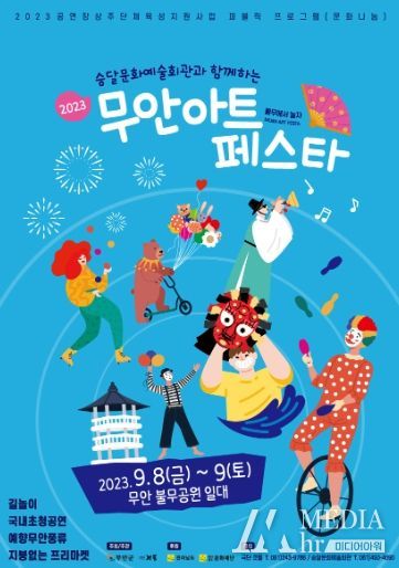 미디어아워 이다정 기자 | 전남 무안군은 오는 9월 8일부터 9일까지 이틀간 오후 6시부터 9시까지 관내 불무공원 일원에서 ‘불무, 예술에 물들다’를 주제로 최초 거리 예술 축제인 ‘2023 무안 아트 페스타’를 개최한다.