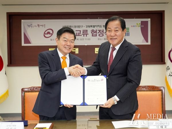 미디어아워 임다연 기자 | 동대문구는 28일 동대문구청 기획상황실에서 강원특별자치도 평창군(군수 심재국)과 우호교류 협정을 체결했다.