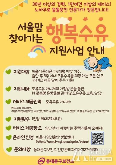 미디어아워 임다연 기자 | 서울 동대문구가 이용 산모의 98.4%를 만족시킨 ‘서울맘 찾아가는 행복수유 지원 사업’을 올해도 지속 추진한다.