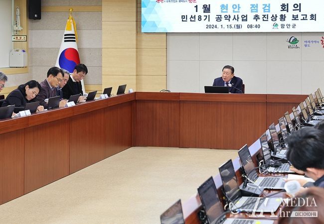 미디어아워 임다연 기자 | 함안군은 15일 오전 군청 별관 3층 중회의실에서 조근제 함안군수 주재로 1월 현안점검회의를 개최했다.