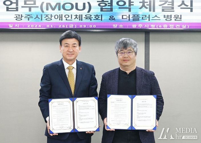 미디어아워 임다연 기자 | 광주시장애인체육회는 지난 26일 광주시청에서 더플러스병원과 업무협약을 체결했다.