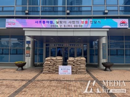 미디어아워 임다연 기자 | 사조동아원(주) 부산공장은 지난 6일, 설을 맞이하여 부산 동구에 사랑의 밀가루(18kg 100포)를 기탁했다.
