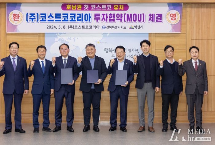 이날 협약식에는 정헌율 익산시장과 조민수 코스트코코리아 대표를 비롯해 최종오 익산시의장, 한병도 국회의원, 한정수 전북특별자치도의원, 김종훈 전북특별자치도 경제부지사 등이 참석했다.