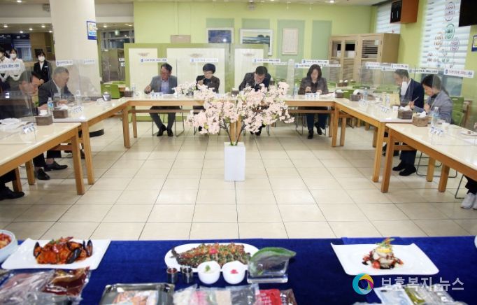 참석자들은 아귀살 스테이크, 마산 통술거리 홍합바스켓, 마산 어시장 장어초벌구이, 대구살 스테이크, 마산식 순살 아구불고기, 창원 명품 도다리쑥국 밀키트 개발 제품을 시식했다.