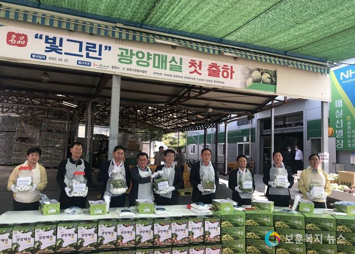 광양시가 지난 25일 광양동부농협 옥곡지점 선별장에서 실시한 2022년산 광양매실 첫 출하식에는 정상범 광양시농업기술센터소장, 임성재 농협중앙회광양시지부장, 지역농협장 등 산지 유통 관계자들이 참석해 매실 수매와 선별작업 현장을 둘러보고 관계자들과 매실 생산농가를 격려했다.