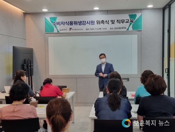 보훈복지뉴스 유서진 기자 | 오산시는 지난 14일 오산시청 세미나실에서 오산시 소비자식품 위생 감시원 19명에 대하여 신규 위촉식에 이어, 소비자 감시원 40여명 대상으로 코로나19로 인해 그동안 비대면으로 진행되었던 식품 안전 파수꾼으로 활동하고 있는 소비자 식품 위생 감시원을 대상으로 직무교육을 실시했다.