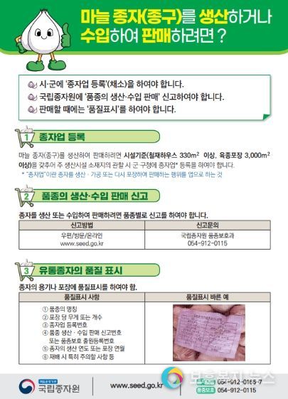 마늘 종구 뿐만 아니라 종자를 구입하고 사용하는 데 있어 문제가 발생할 경우 국립종자원에 상담을 요청할 수 있다.