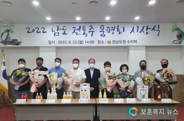 보훈복지뉴스 유서진 기자 | 전라남도는 22일 도청 수리채에서 ‘2022년 남도 전통주 품평회’에서 영예의 종합 대상을 차지한 나주 다도참주가(대표 장연수) ‘라봉’ 등 수상 11개 제품(업체)을 시상했다.