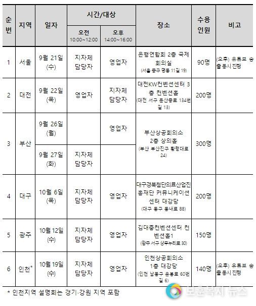 설명회는 전국 6개 권역에서 2회씩(영업자와 지자체공무원 대상별 1회) 개최되며, 현장 참석과 유튜브 생중계 등 원격참여 방식을 병행하여 진행된다.