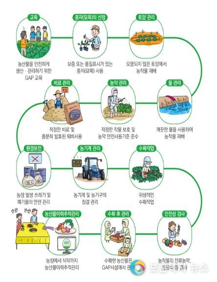 우수관리인증(GAP)은 농장에서 식탁까지 농산물을 안전하게 관리하기 위해 생산·수확 후 관리 및 유통의 각 단계에서 관리기준에 따라 깨끗하게 관리하고 농약이나 유해미생물 등이 농산물을 오염시키는 것을 차단하는 제도로 전국 11만 9천('22. 8월 기준) 농가가 우수관리인증(GAP)을 실천하고 있다.