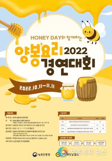 보훈복지뉴스 유서진 기자 | ‘최고의 양봉산물 요리사를 찾아라’농촌진흥청은 한국양봉협회와 함께 ‘제2회 양봉요리 경연대회’를 연다.