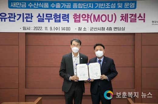 보훈복지뉴스 유서진 기자 | 군산시는 9일 수산식품 안전성 체질개선과 경쟁력 강화를 위해 한국식품안전관리인증원과 업무협약을 체결했다고 밝혔다.