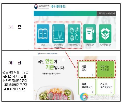 아울러 식약처는 이번 건강기능식품 공전 온라인 서비스 신설과 함께 ‘식품분야 공전 서비스’의 사용자 편의 기능을 개선했다.