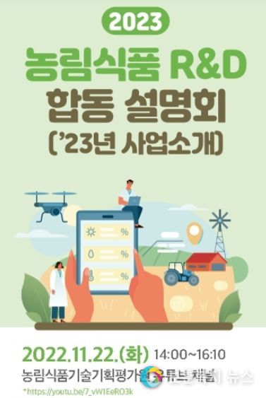 보훈복지뉴스 유서진 기자 | 농림축산식품부와 농촌진흥청, 산림청, 농림축산검역본부는 11월 22일 14시부터 온라인을 통해 2023년 농림식품 연구개발사업에 대한 합동 설명회를 개최한다.