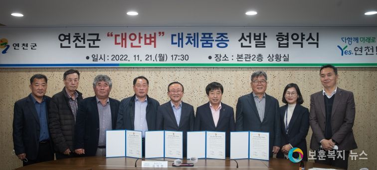 보훈복지뉴스 유서진 기자 | 연천군은 지난 21일 군청 상황실에서 대안벼 보급종 공급 중단에 따른 대안벼 대체품종 선발 협약을 맺었다고 22일 밝혔다.