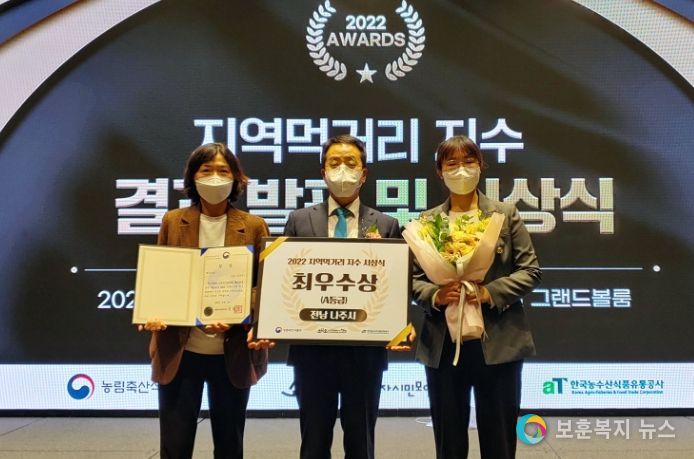 보훈복지뉴스 유서진 기자 | 전라남도 나주시는 전국 지자체를 대상으로 한 ‘2022 지역 먹거리 지수’ 평가에서 3년 연속 최우수상(A등급)을 따내며 농림축산식품부 장관상을 수상했다고 24일 밝혔다.