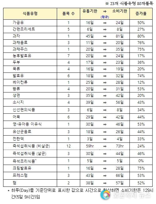① 두부, 햄, 발효유, 어묵 등 23개 식품유형 80개 품목에 대한 소비기한 참고값을 제시했다.