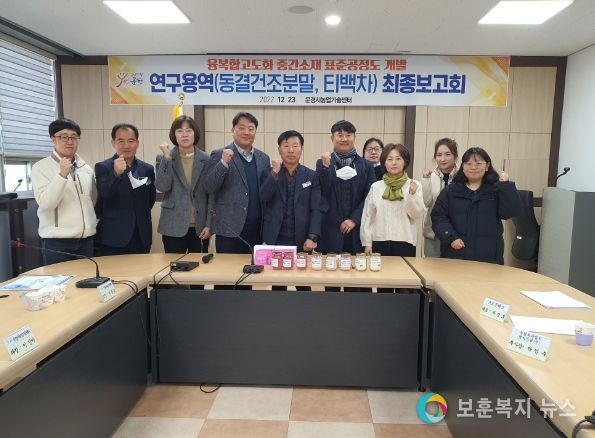 보훈복지뉴스 유서진 기자 | 문경시농업기술센터(소장 이경호)는 지난 23일 금요일 농업기술센터 2층회의실에서 문경특산물 식품소재산업 육성의 일환으로 문경오미자와 문경사과를 대상으로 동결건조분말등의 식품소재 연구개발 연구용역을 수행하고 연구결과에 대한 최종보고회를 개최했다.