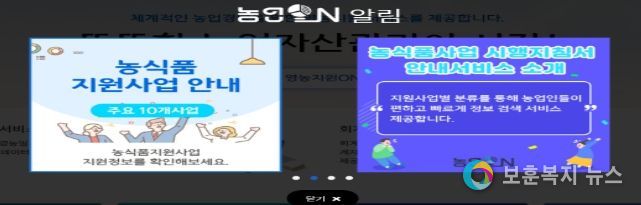 보훈복지뉴스 유서진 기자 | 농림축산식품부는 2023년 농식품부 지원사업 정보를 농식품사업정보 플랫폼인 “맞춤형농식품사업안내서비스”를 통하여 1월 20일부터 제공한다고 밝혔다.