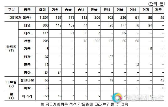 보급종은 신청 시 지정한 지역농협을 통해 4월 1일부터 5월 10일까지 공급하며, 정확한 공급일정은 관할 국립종자원 지원으로 문의하면 된다.