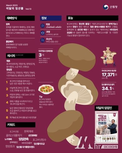 3월 이달의 임산물 주인공은 표고버섯이다. '산속의 고기'로 불릴 만큼 영양가 높은 표고버섯은 쫄깃한 식감과 특유의 향이 좋고, 다양한 효능을 가지고 있다.