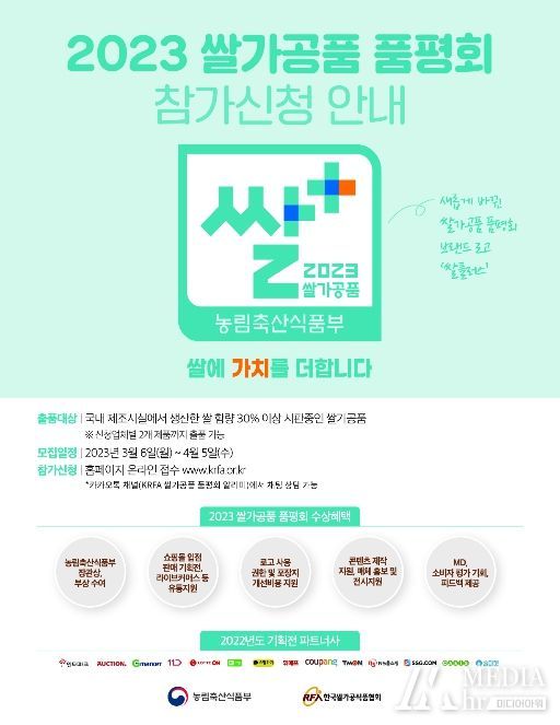 미디어아워 최지나 기자 | 경상남도는 농림축산식품부가 주최하고 (사)한국쌀가공식품협회가 주관하는 ‘2023 쌀가공품 품평회’에 도내 우수 쌀 가공업체들의 신청을 독려했다.