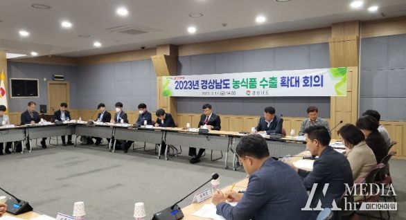 미디어아워 최태문 기자 | 경남도는 17일 경남도청 서부청사에서 도 및 시군, 한국농수산식품유통공사(aT) 경남지역본부, 농협 경남지역본부, 경남무역 및 신선농산물 생산자 단체가 참석한 가운데 ‘2023년 농식품 수출 촉진 대책 회의’를 개최했다.