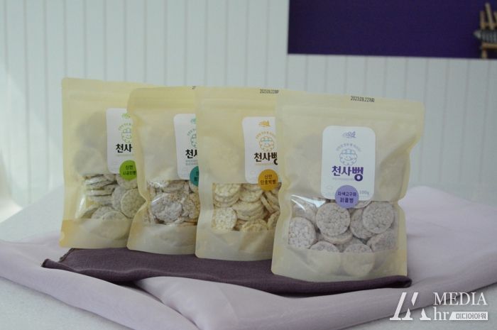 천사뻥은 초록빛의 시금치를 넣은 “시금치뻥”과 보랏빛의 자색고구마를 첨가하여 만든 “퍼플뻥”, 노란빛의 단호박을 넣어 만든 “단호박뻥”, 짭조름한 함초를 넣어 만든 “함초뻥”4종으로 구성됐다.
