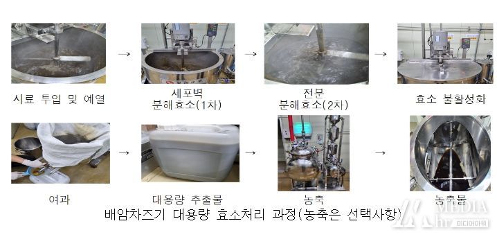 이번에 개발한 기술은 열풍 건조한 배암차즈기 분말에 유기산(구연산)을 넣고 찐 다음, 흔히 사용하고 있는 식품 효소(펙틴, 전분 분해효소)를 처리해 추출물을 만드는 것이다.