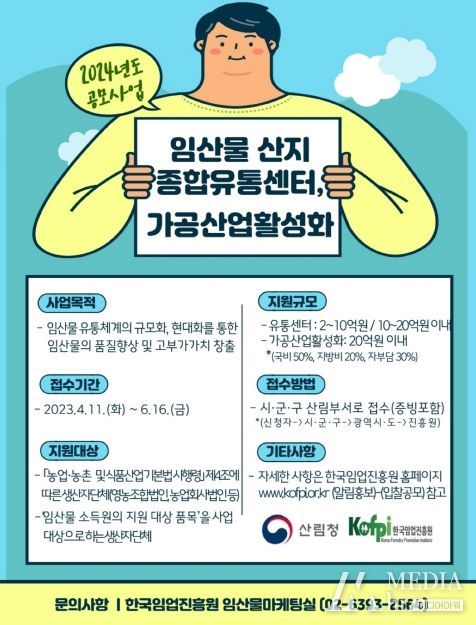 미디어아워 최태문 기자 | 산림청은 단기소득임산물 시장경쟁력 향상을 위해 유통‧가공분야 기반 시설을 지원하는 ’24년 공모사업을 추진한다고 밝혔다.