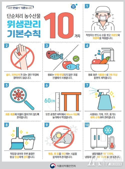 식약처는 안전한 단순처리 농‧수산물 생산을 위해 업체에서는 원재료의 위생적 취급 등 위생관리 기본수칙을 준수하는 것이 중요하다고 강조했다. 특히 지난해 농산물의 미생물 잔류실태 조사 결과, 시중에 유통 중인 깐밤 등 일부 단순 처리 농산물에서 리스테리아균이 검출된 사례가 있어 소비자는 단순처리 농수산물 섭취 시 올바른 조리방법에 따라 가열‧조리할 것을 당부했다.