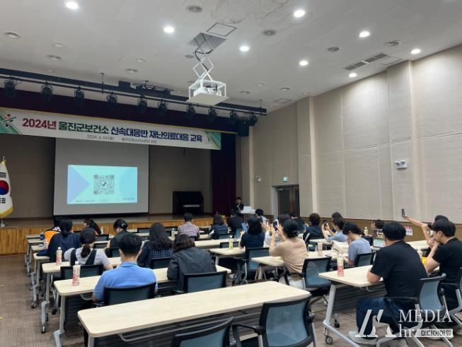 미디어아워 임다연 기자 | 울진군은 지난 24일 울진군청소년수련관 강당에서 재난 및 다수 사상자 발생시 현장에서의 신속한 재난의료대응·지원을 위해‘2024년 보건소 신속대응반 재난의료대응 교육·훈련’을 실시하였다.