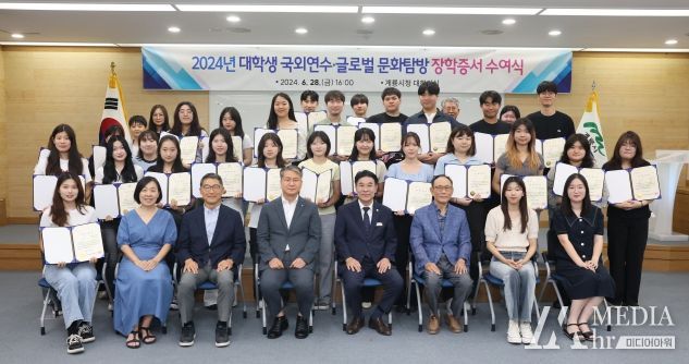 미디어아워 임다연 기자 | (재)계룡시애향장학회는 28일 시청 대회의실에서 2024년 대학생 국외연수 장학생 16명, 미래 인재 글로벌 문화탐방 장학생 10명을 대상으로 장학증서 수여식을 열었다.