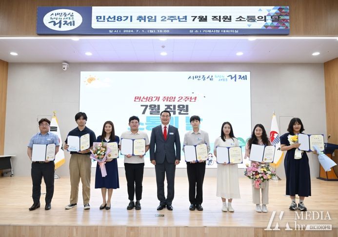 미디어아워 임다연 기자 | 거제시는 지난 1일, 직원소통의 날을 맞아 2024년 상반기 친절공무원 6명을 선정해 시상했다.