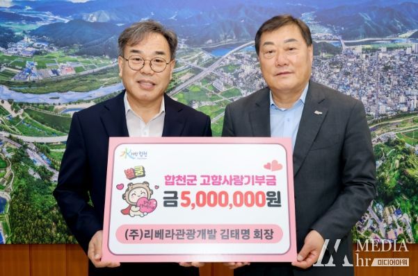 미디어아워 임다연 기자 | 합천군은 지난 3일, ㈜리베라관광개발 김태명 회장이 합천군청을 방문해 고향사랑기부제 최고 금액인 500만원을 기탁했다고 밝혔다.