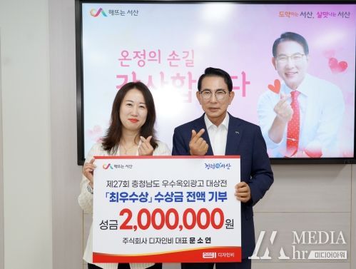 미디어아워 임다연 기자 | 충남 서산시는 5일 디자인비(Design B)가 제27회 충남 우수옥외광고 대상전을 통해 획득한 최우수상 수상금 200만 원을 기탁했다고 밝혔다.