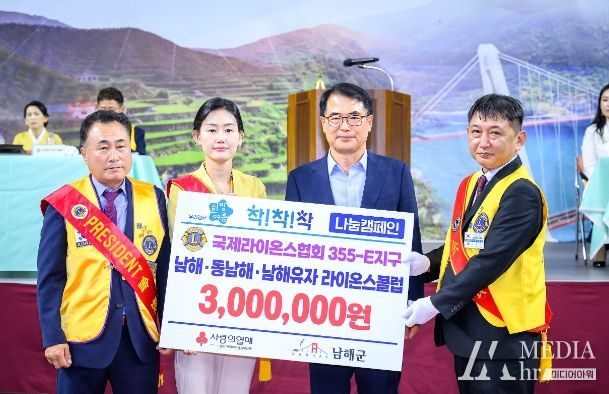 미디어아워 임다연 기자 | 남해군은 지난 5일 남해실내체육관에서 국제라이온스협회 355-E지구 남해·동남해·남해유자라이온스 합동 이·취임식이 열린 가운데 이들 단체에서 이웃돕기 성금 300만원을 기탁했다고 밝혔다.