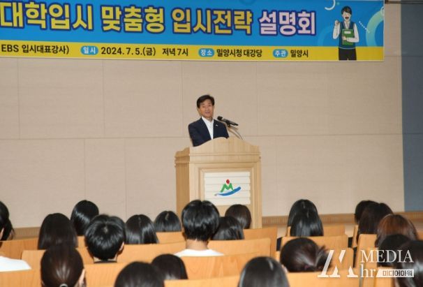 미디어아워 임다연 기자 | 밀양시는 지난 5일 오후 7시 시청 대강당에서 입시전문가인 허용회 경남 입시전략연구소장을 초청해 2025학년도 진로 진학 입시설명회를 개최했다고 밝혔다.