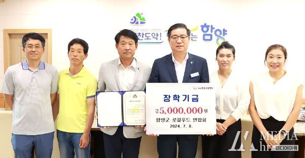 미디어아워 임다연 기자 | (사)함양군장학회는 7월 8일 함양군 로컬푸드연합회 김석곤 회장 외 회원들이 함양군을 방문해 장학금 500만 원을 기탁했다고 밝혔다.