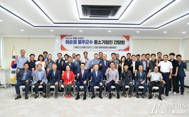 미디어아워 임다연 기자 | 울산시 울주군이 9일 울주군 중소기업경영지원센터에서 이순걸 군수를 비롯해 울주군 중소기업협의회 회장, 사무총장 및 중소기업 대표 및 임직원 등 40여명이 참석한 가운데 지역 중소기업인과의 간담회를 개최했다.