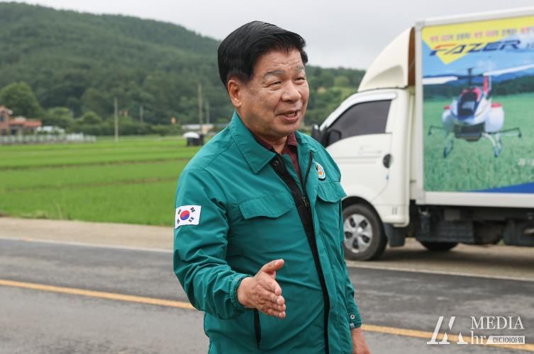 미디어아워 임다연 기자 | 이상근 고성군수는 11일 주요 병해충에 대한 신속한 방제를 위해 추진하고 있는 벼 병해충 공동방제 현장(회화면 배둔리 765-9)을 방문해 농업인들의 애로사항을 청취하는 등 현장 행정을 펼쳤다고 밝혔다.