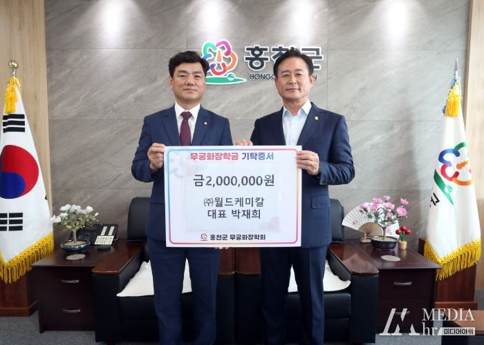 미디어아워 임다연 기자 | ㈜월드케미칼은 7월 11일 홍천군청을 방문하여 홍천군 인재 육성을 위한 무궁화장학금을 200만 원을 기탁했다.