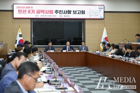 미디어아워 임다연 기자 | 거제시는 지난 11일 중회의실에서 시민과의 약속인 공약사업 추진 상황을 점검하기 위한 ‘민선8기 공약사업 추진상황 보고회’를 개최했다.