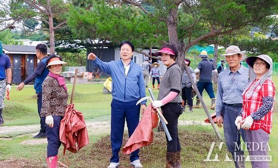 무더운 날씨에도 불구하고 집중호우로 인해 선남면파크골프장일대에 떠내려 온 각종 자갈 및 쓰레기를 수거했고 안전망에 걸린 부유물을 제거하는 데 최선을 다했다.