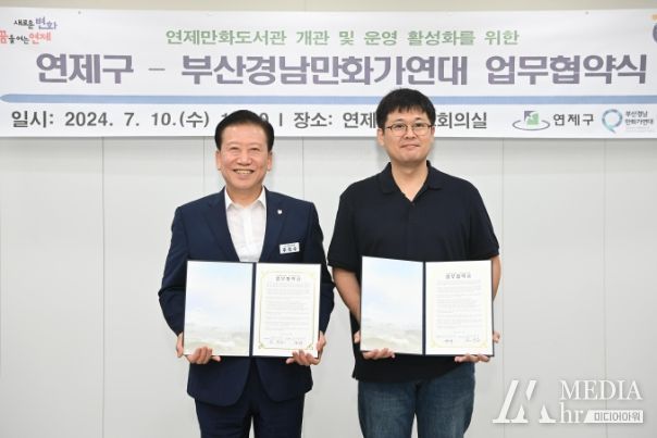 미디어아워 임다연 기자 | 연제구는 7월 10일 연제만화도서관의 성공적인 개관과 운영 활성화를 위해 부산경남만화가연대(대표 최인수)와 업무협약을 체결했다.
