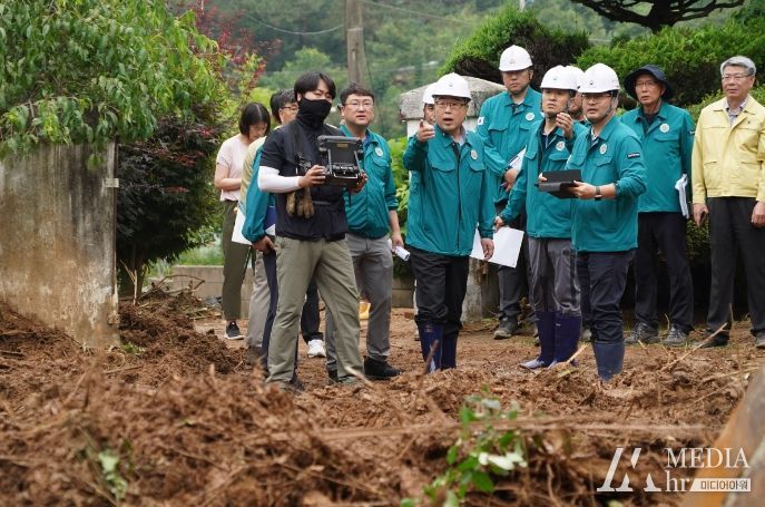 미디어아워 임다연 기자 | 산림청은 지난 7.8~7.10일 사이 내린 집중호우로 인해 산사태 피해가 발생한 전북특별자치도 군산시와 사방댐 설치를 통해 민가‧농경지 피해를 예방한 익산시를 방문해 현장 응급조치 및 안전관리 상황을 점검했다고 12일 밝혔다.