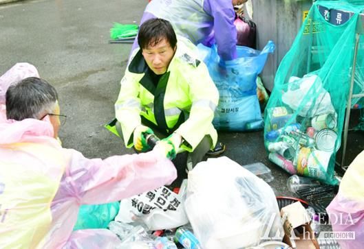 미디어아워 임다연 기자 | 조현일 경산시장은 민선8기 취임 2주년을 맞이하여 16일 비가 오는 궂은 날씨에도 불구하고, 이른 아침부터 서부2동 일대에서 환경관리원들과 함께 가로청소 및 클린하우스에 배출된 쓰레기와 재활용품을 정리하며 하루를 시작했다.