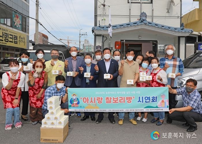 이날 시연회에는 조근제 군수 와 중앙1동 곽필구 이장 등 40여 명이 참석해 빵‧전병 제작기계 시연과 시제품을 맛보고 품평하는 시간을 가졌다.
