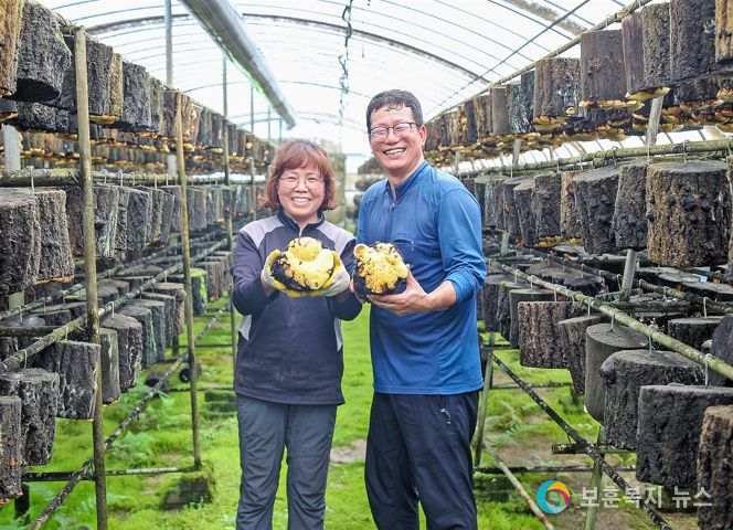 보훈복지뉴스 유서진 기자 | 5일 산청군 생비량면에서 유기농 상황버섯을 재배중인 방광덕, 유미숙씨 부부가 버섯을 수확하고 있다.