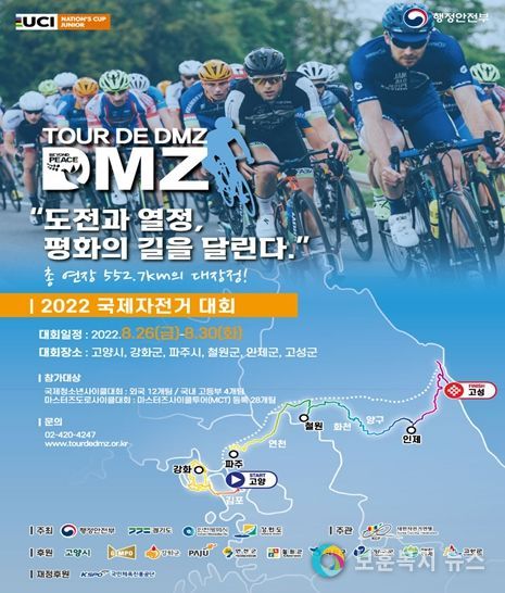 보훈복지뉴스 유서진 기자 | 행정안전부와 경기도, 인천광역시, 강원도가 공동주최하고 대한자전거연맹이 주관하는 ‘뚜르 드 디엠지(Tour de DMZ) 2022 국제자전거대회’가 3년 만에 개최된다.